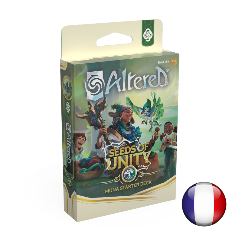 Découvrez l’univers d’Altered avec le deck de démarrage Muna – Seeds of Unity, idéal pour apprendre les mécaniques du jeu et plonger immédiatement dans des parties stratégiques et dynamiques.