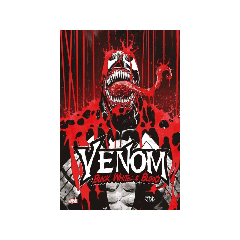 Plongez dans une série d'histoires de Venom en noir, blanc... et rouge sang ! Dans la jungle face à un commando paramilitaire, aux côtés d'un enfant en quête de vengeance, contre son meilleur ennemi Spider-Man, ou dans un monde où Peter Parker aurait cédé à ses pulsions les plus violentes... vous ne saurez plus où donner du symbiote ! Le format Black, White & Blood est devenu un passage obligé pour les antihéros Marvel, et Venom y trouve un terrain de jeu idéal ! Des récits brutaux et stylisés portés par des duos prestigieux : David Michelinie & Jonas Scharf, Ryan North & Creees Lee, Erik Larsen, Chris Bachalo... et bien d'autres !