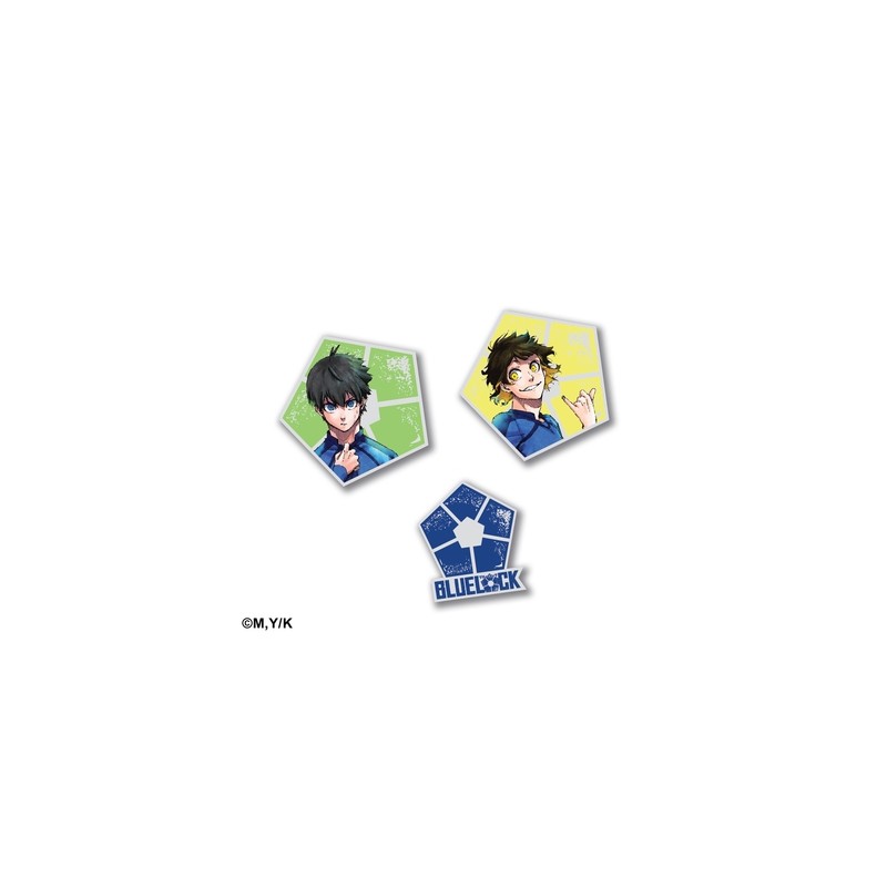 1 set officiel de 3 pin’s Blue Lock dans un sachet dédié, par Pika Goods, la gamme de produits dérivés officiels !