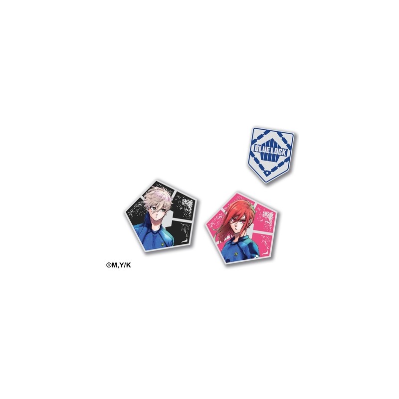 1 set officiel de 3 pin’s Blue Lock dans un sachet dédié, par Pika Goods, la gamme de produits dérivés officiels !