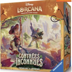 Avec ses 8 boosters du Chapitre 12, le Trésor offre une belle session d'ouverture pour partir à la chasse aux raretés de l'extension — Épiques, Enchantées et Iconiques — tout en bénéficiant d'une boîte de rangement entièrement illustrée aux visuels exclusifs de Contrées Inconnues. La boîte elle-même est un objet de collection à part entière, conçue pour conserver et exposer durablement vos cartes Lorcana.