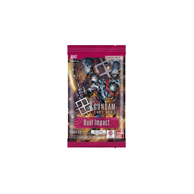 Dual Impact is the second set for the Gundam TCG. This set introduces for the first time characters and Mobile Suits from various TV series like Gundam X, Gundam AGE, Iron-Blooded Orphans, and more! Dual Impact includes 130 different cards to collect, 47 of cards are also available as rare alternate art versions. Use booster packs to expand your collection and strengthen your decks!