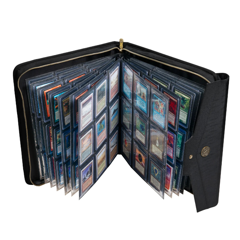 Notre classeur pour cartes avec toploaders peut contenir jusqu'à 252 cartes dans des pochettes individuelles intégrées aux pages cousues.