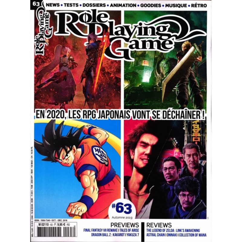 Le numéro 63 du magazine Role Playing Game (octobre – décembre 2019) propose un dossier central consacré aux RPG japonais à paraître en 2020. Cette édition met en avant les grandes sorties attendues et analyse les tendances du jeu de rôle vidéoludique nippon.