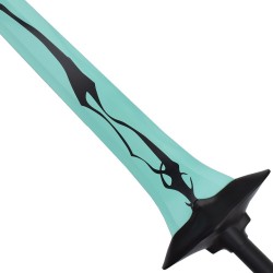 La lame présente une finition turquoise distinctive avec un motif noir stylisé, évoquant l’énergie et l’aura du Roi Démon. Associée à une poignée entièrement métallique, l’ensemble offre une pièce de collection à la fois élégante et imposante.