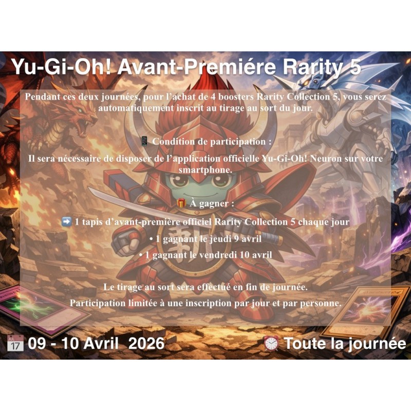 Pendant ces deux journées, pour l’achat de 4 boosters Rarity Collection 5, vous serez automatiquement inscrit au tirage au sort du jour.
